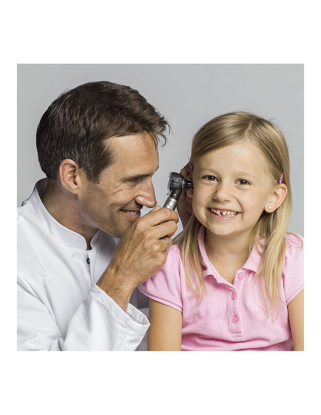 Otoscope moderne avec éclairage à LED qui ne demande pas d’entretien. Apporte deux fois plus de lumière qu’un otoscope XHL Xénon Halogène conventionnel. Fonctions identiques à mini3000 F.O. Otoscope, de plus : Ne demande pas d’entretien, car il n’est pas nécessaire d’échanger les ampoules. Gestion thermique des LEDs pour la luminosité constante tout au long de la durée de vie. LED à haute performance : éclairage lumineux et absolument homogène avec un excellent rendu des couleurs – température de couleur 4000 K, indice de rendu des couleurs > 95, pour le rendu des couleurs rouge > 90. Deux fois plus de lumière en comparaison avec les instruments Xénon Halogène. Indicateur de performance : L’instrument s’allume à l’intensité lumineuse maximale. Ensuite la luminosité est adaptée au statut de charge actuel de la batterie. La fonction de diminution progressive de la luminosité signale que les batteries devront bientôt être échangées ou rechargées. Durée d’autonomie jusqu’à 10 heures. Moins d’échanges de batteries, durée de vie prolongée des batteries rechargeables.