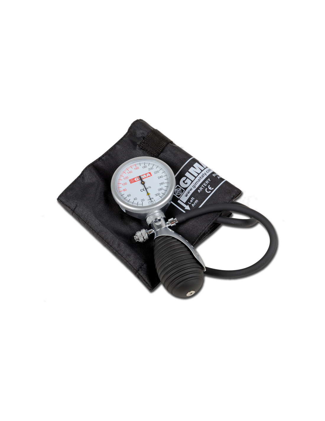 Manomètre anéroïde manopoire en alliage de zinc métallique élégant et robuste avec poire intégrée munie d'une valve de décompression facilitant la prise à une main, livré avec une poignée spéciale réglable pour gaucher ou droitier, un brassard étalonné en nylon et à fermeture velcro et vessie à un tube. Lecture simplifiée : cadran large (Ø65 mm). Décompression par un seul bouton de pression pour un dégonflage progressif précis (32731 uniquement). Poire brevetée en caoutchouc PVC spécial. Fourni dans une pochette de transport en nylon élégante, rangée dans son coffret.