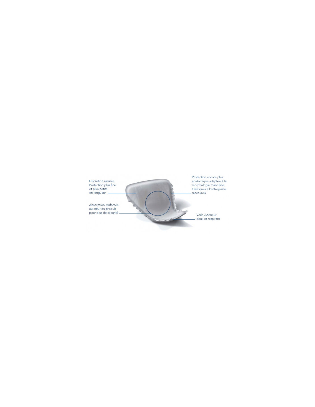 Une protection discrète spécifique pour hommes : découpe anatomique, particulièrement adaptée aux hommes