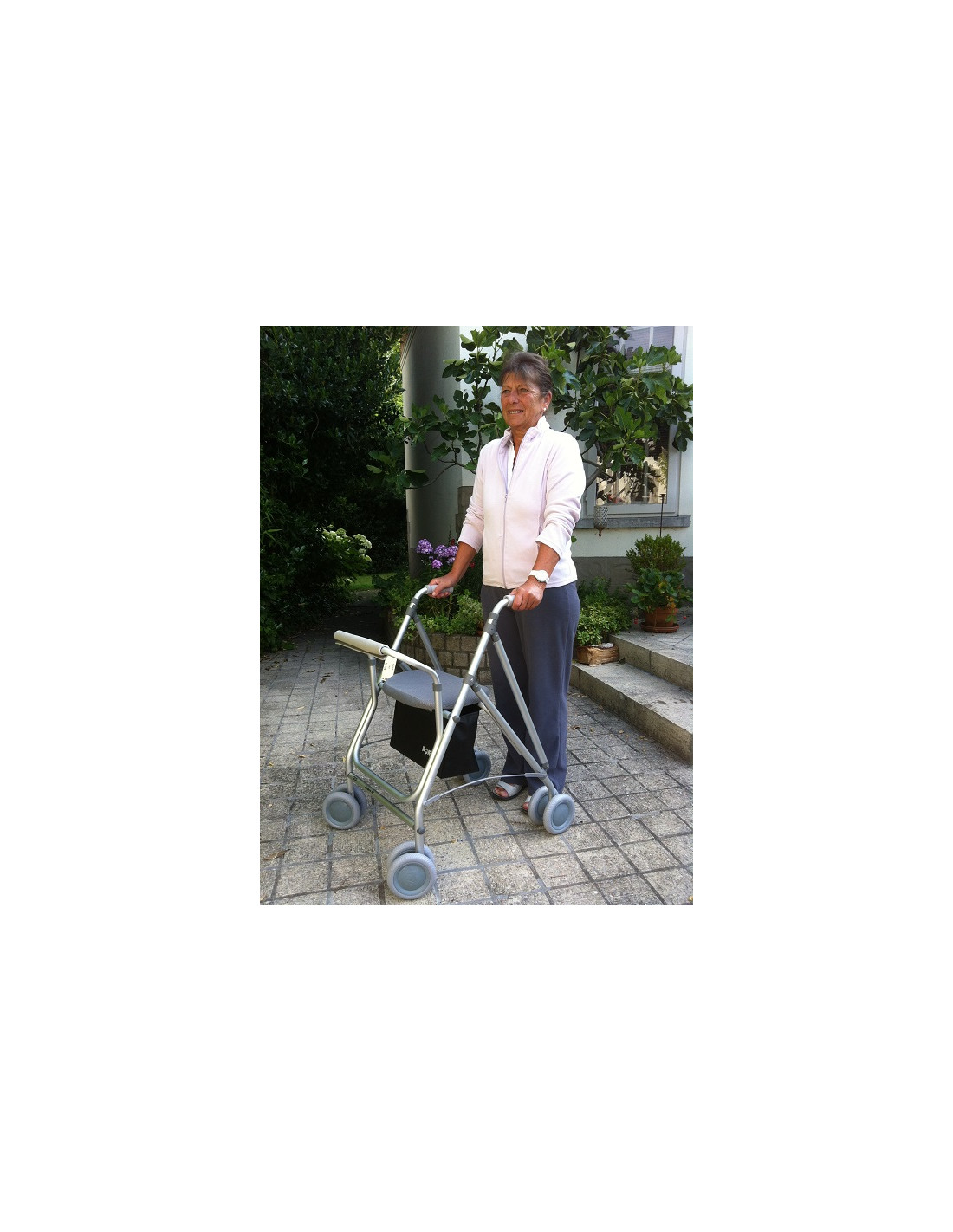 Rollator très léger avec système de frein à pression à l’arrière et roues pivotantes à l’avant…