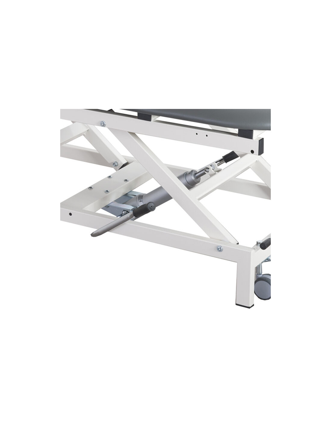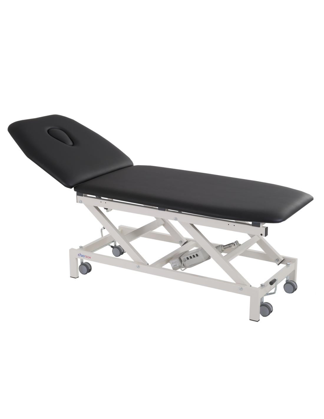 Table professionnelle à 2 plans réglable électriquement ou hydrauliquement en hauteur pour traitement, massage et examen médical.