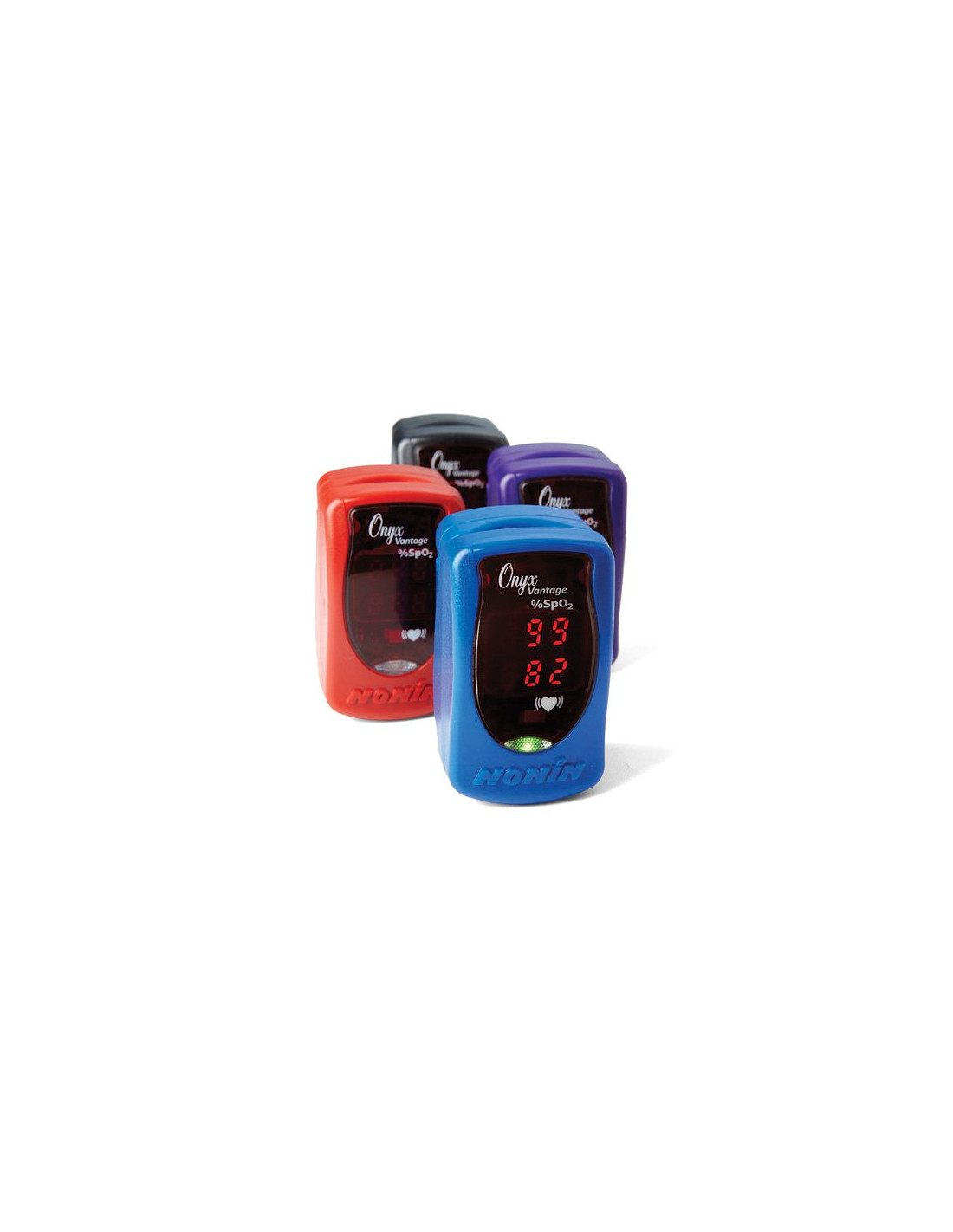 L'oxymètre de pouls numérique Onyx Vantage 9590 est disponible en noir, bleu, rouge et violet.